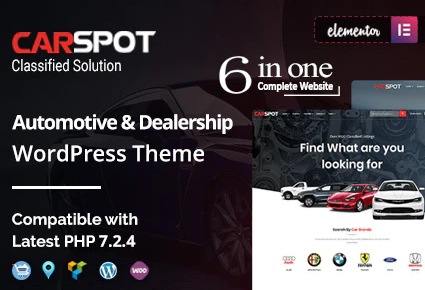 CarSpot, herhangi bir otomotiv, bisiklet, tekne işletmesi, araba hizmetleri, kiralama hizmetleri, onarım hizmetleri ve herhangi bir motor aksesuar mağazası için en uygun, kusursuz, çok işlevli bir otomobil satıcısı temasıdır. Modern bir araba ticareti web sitesi yapmanıza izin veren süper mükemmel özelliklerle doludur. İçine en özel araç inceleme sistemini entegre ettik, istediğiniz kadar özel alanlar ekleyebilirsiniz.